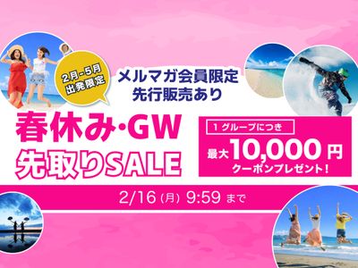 【1/30~メルマガ会員先行販売を実施】最大10,000円割引クーポン+特典付きプランでお得に国内旅行を楽しもう♪