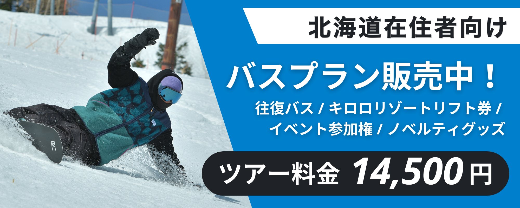 ジェイトリップが運行しているキロロリゾートへの早朝バス「パウダーエクスプレス」に、プロスノーボーダー平間和徳氏(ラマ先生)が乗車!参加者全員でのゲレンデセッションをお楽しみください!