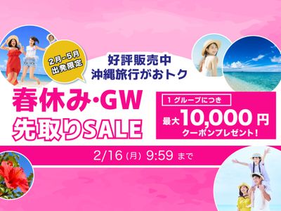 【2/16まで】最大10,000円割引クーポンプレゼント!さらにセール限定で夕食無料やお部屋のグレードアップ特典付き!お得に沖縄旅行を楽しもう♪